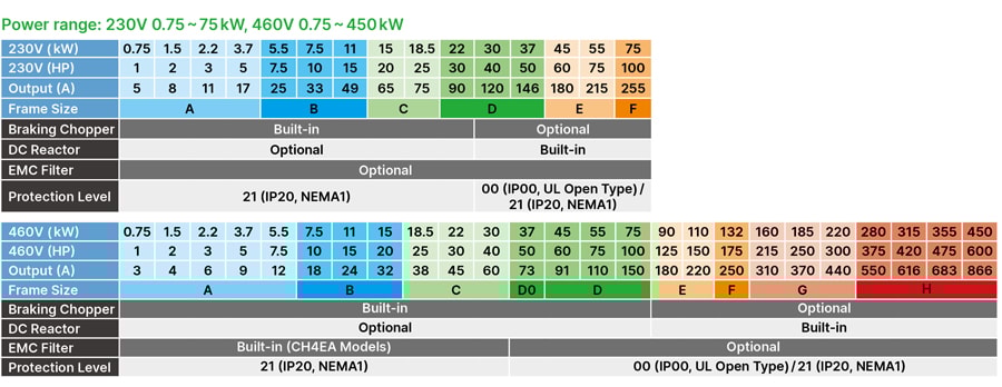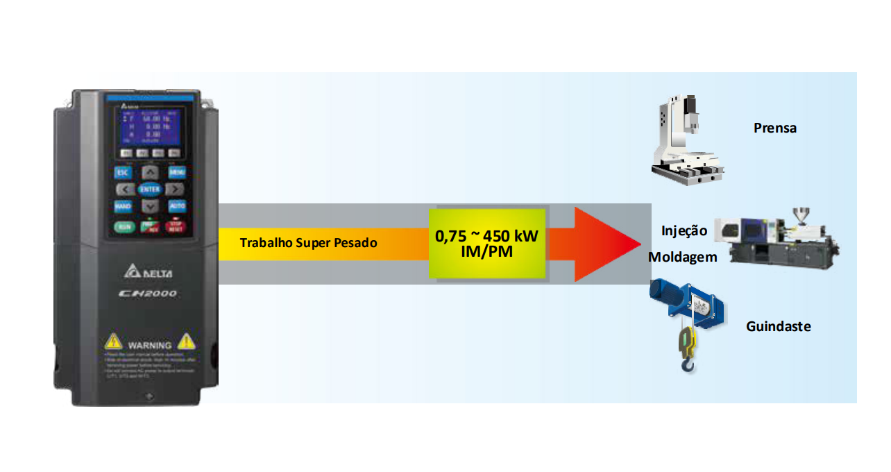 Inversor de Controle Vetorial para Serviço Pesado Delta Série CH2000 |
