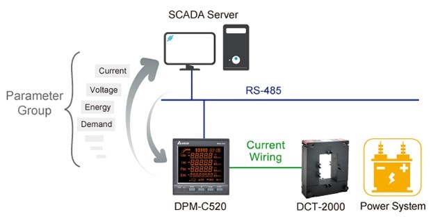 | Medidor de Energia Delta DPM-C520 com Protocolo Modbus RTU e Alta Precisão |
